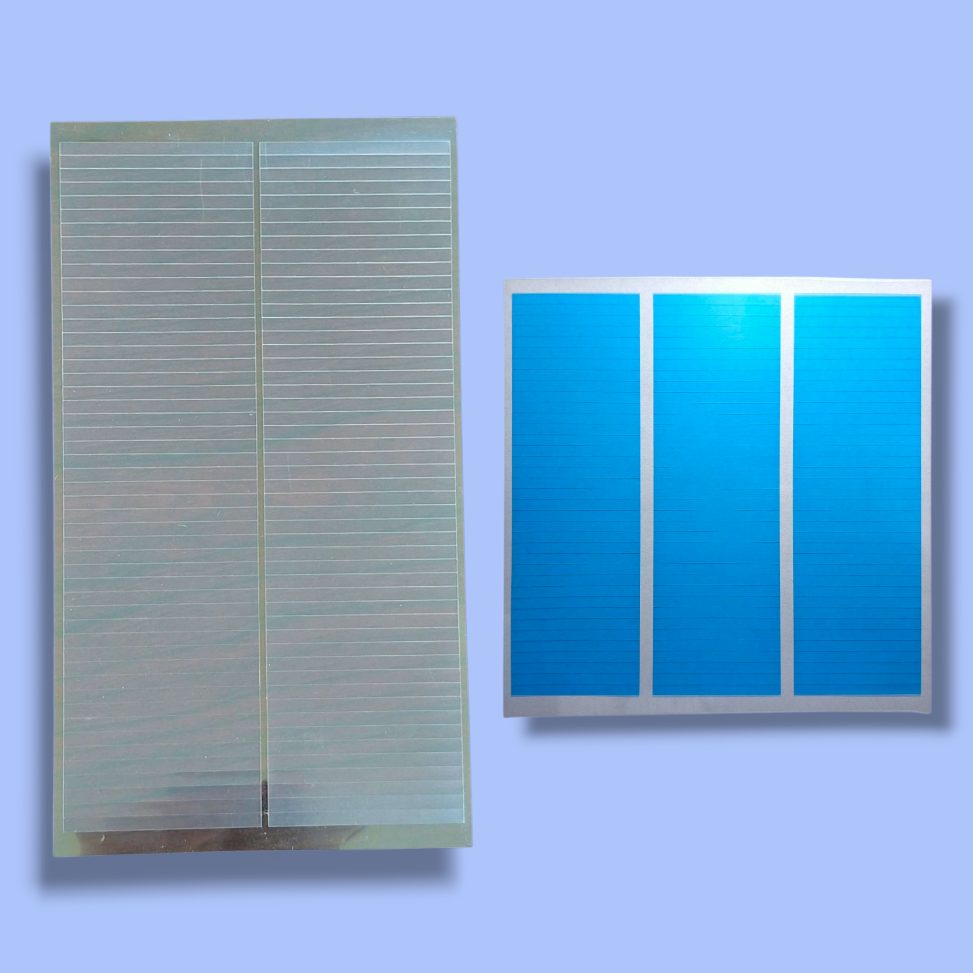 Pre-cut labels ready for printing, customizable in size and available in various materials depending on customer requirements.